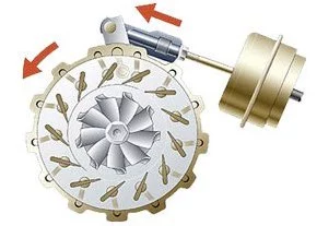 Turbina cu geometrie variabilă permite modificarea sectiunii de curgere a gazelor de evacuare în functie de regimul de functionare al motorului.
